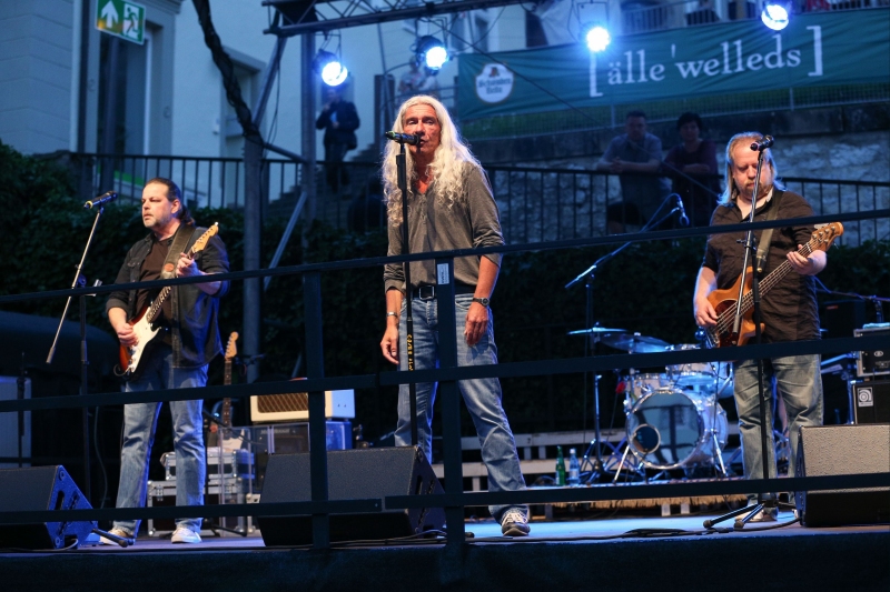 Die Band in Höchstform auf dem vollen Marktplatz in Backnang. Copyright: Edgar Layher.